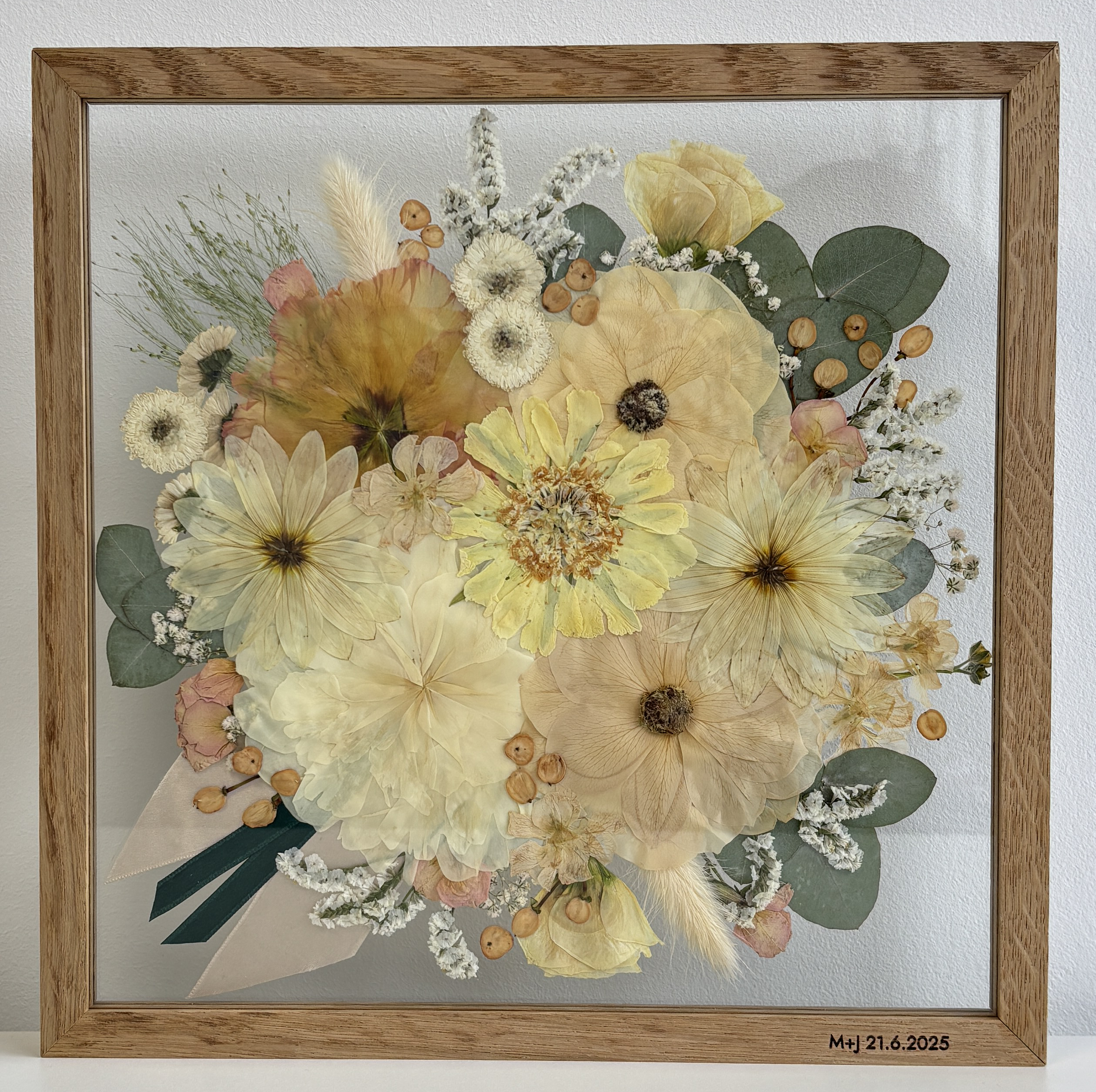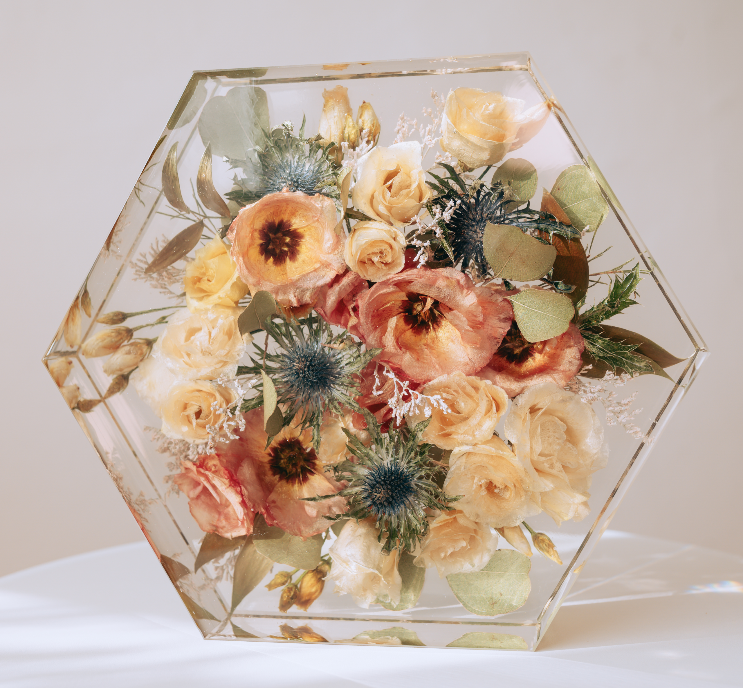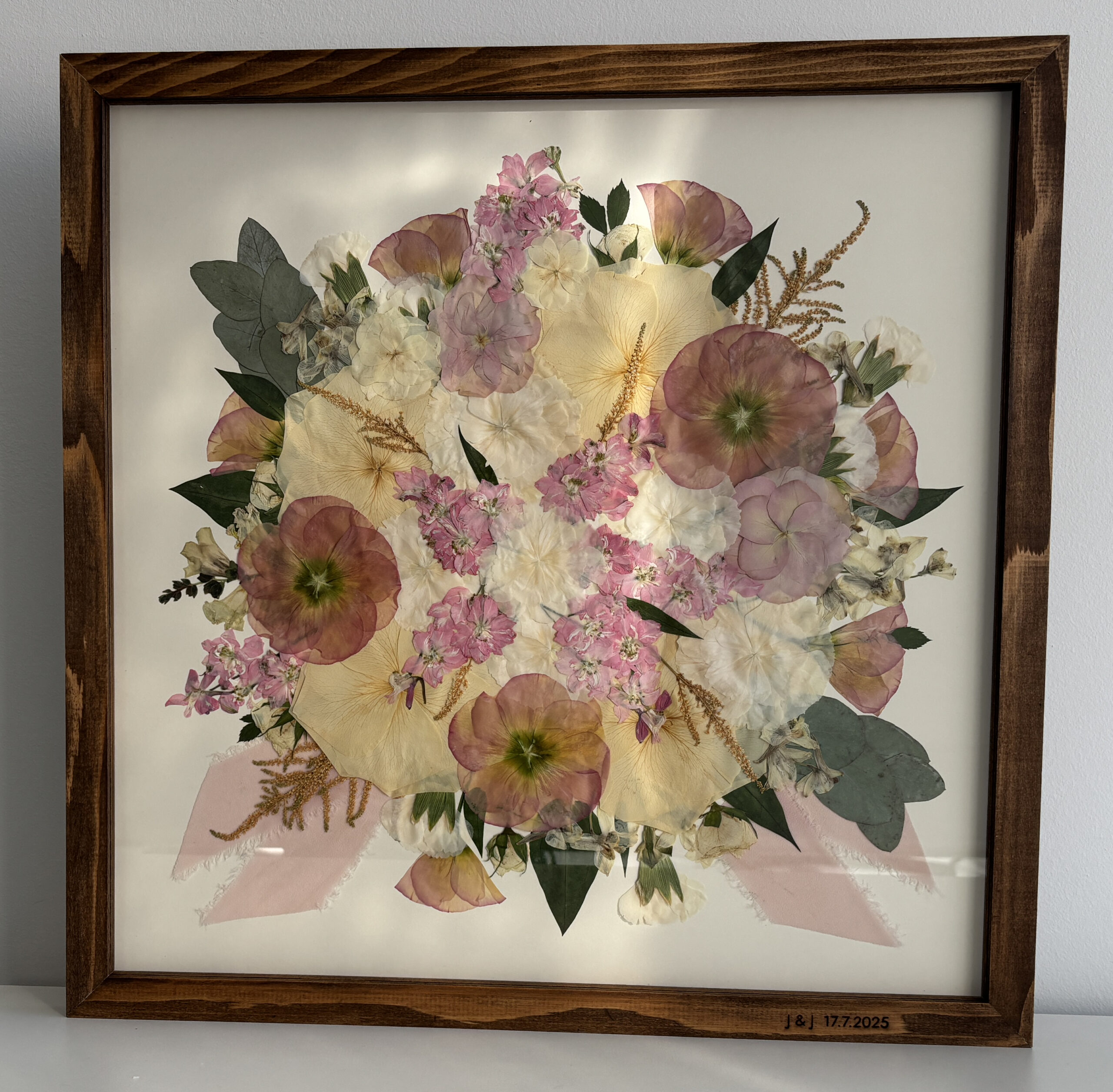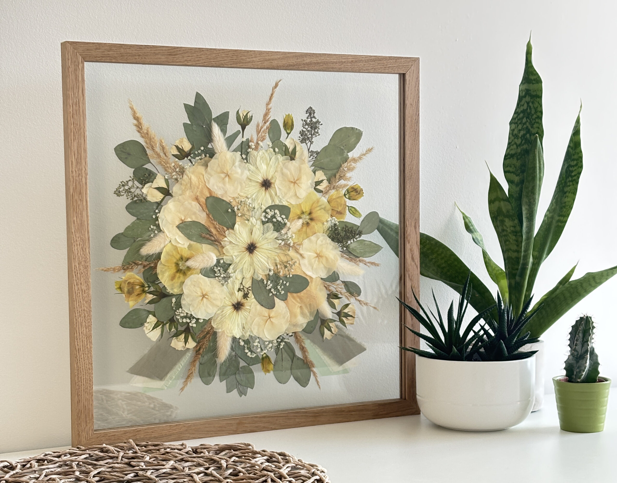Každý obraz i pryskyřicový výrobek vznikl z konkrétní svatební kytice a osobního příběhu.