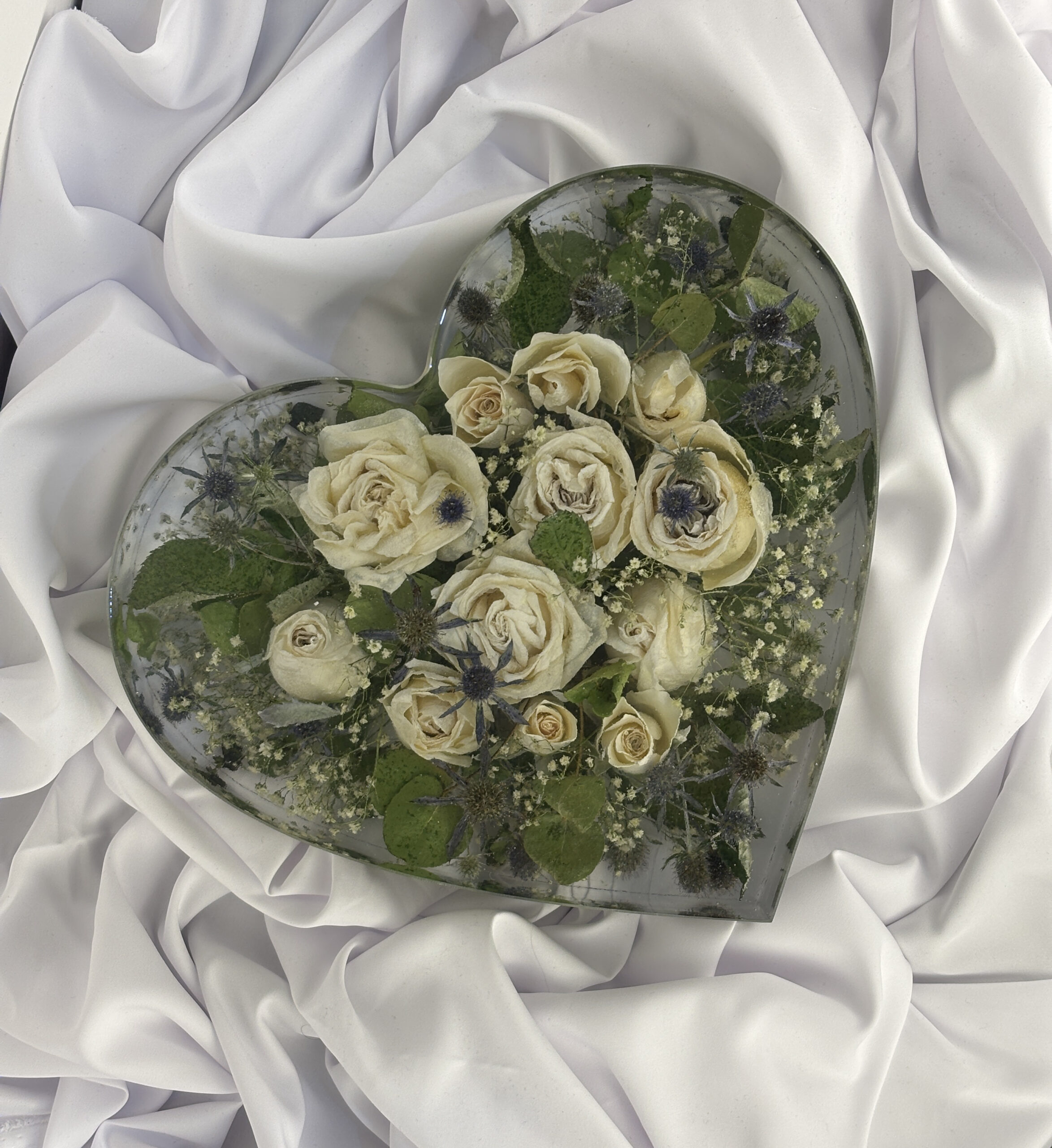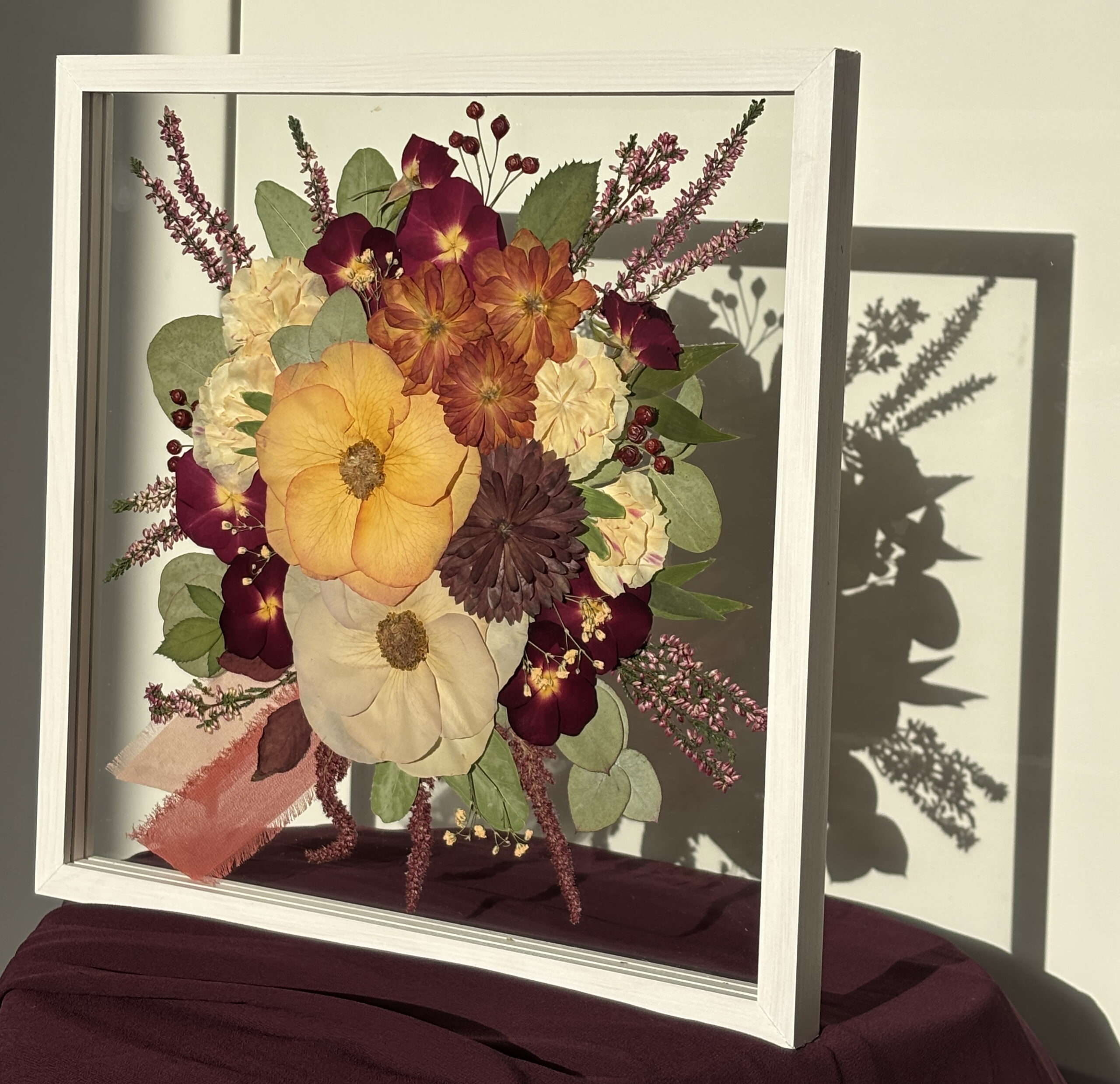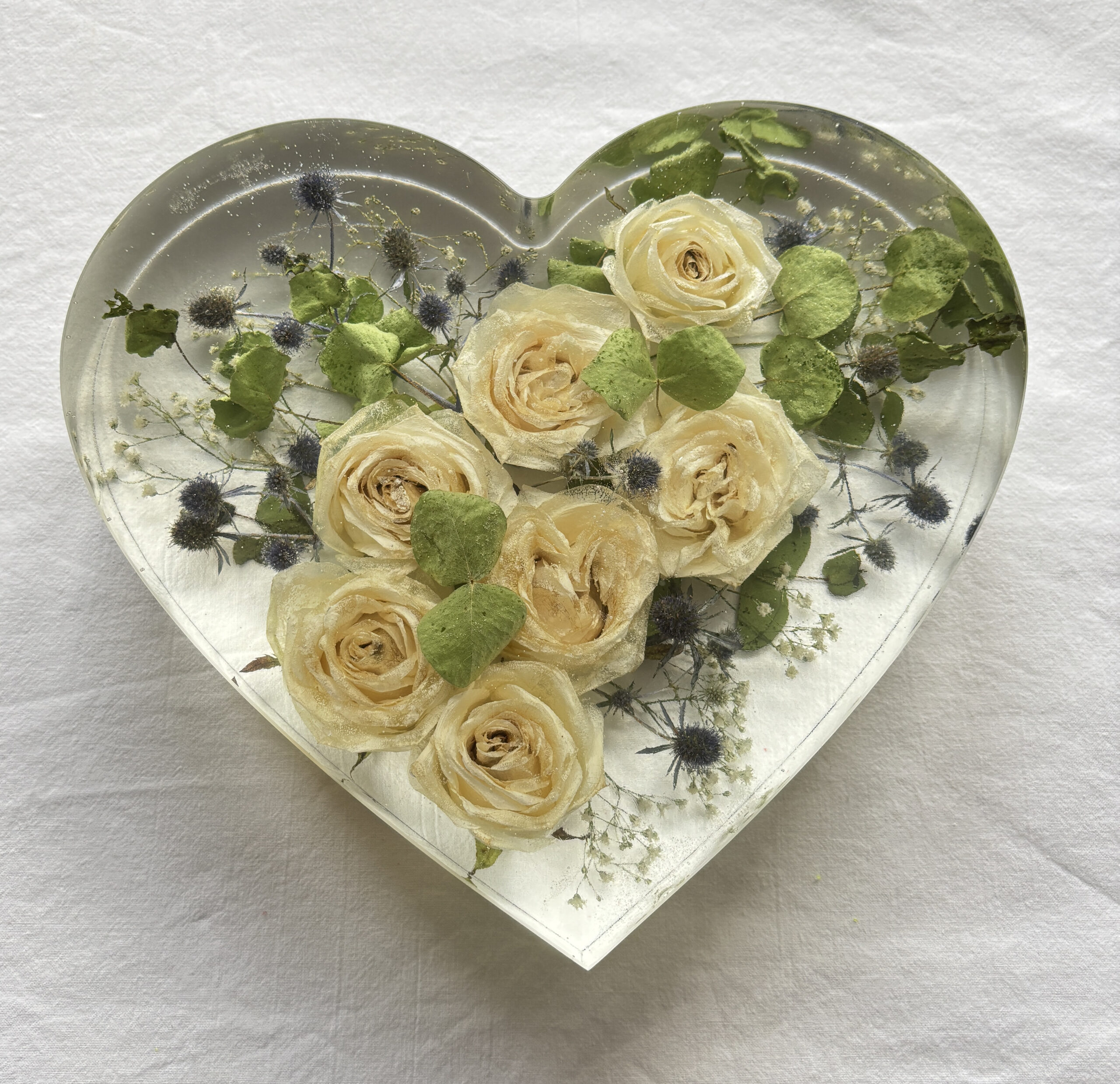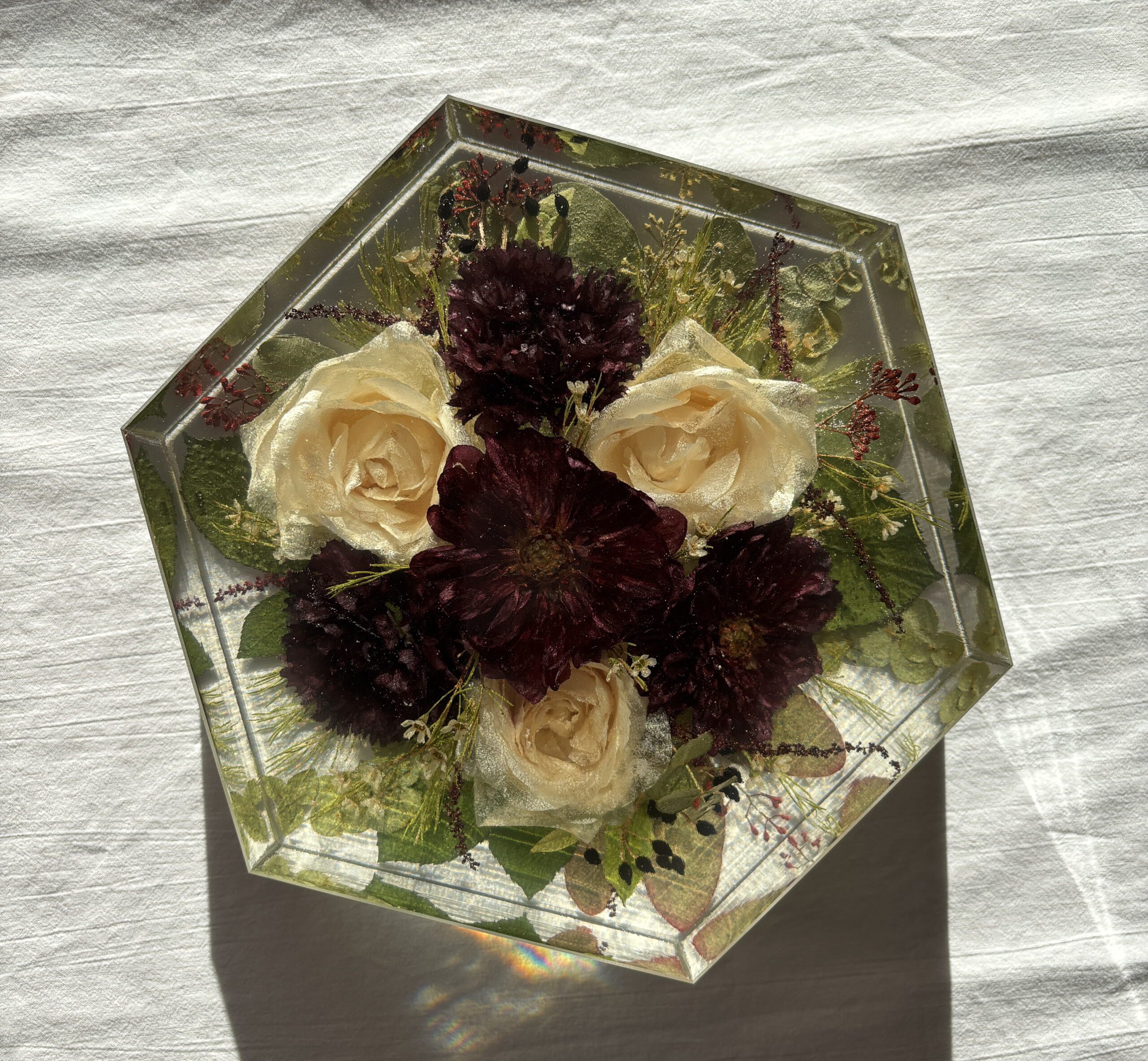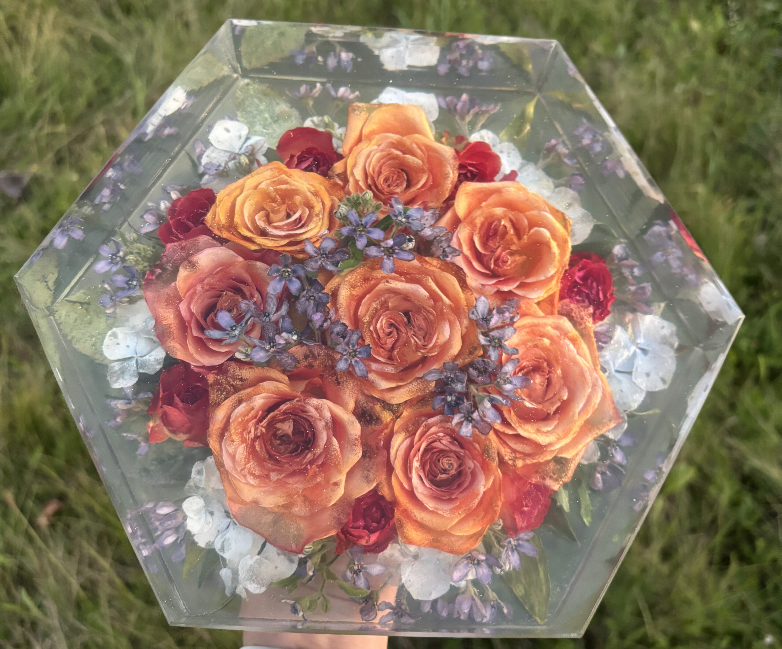 Každý obraz i pryskyřicový výrobek vznikl z konkrétní svatební kytice a osobního příběhu.